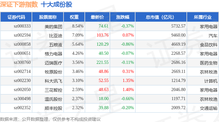 证券之星消息,10月24日,深证下游(399706)指数报收于5817.26点,涨0.16%,成交844.59亿元,换手率1.41%。当日该指数成份股中,上涨的有49家,指南针以5.44%的涨幅领涨,下跌的有51家,新诺威以7.69%的跌幅领跌。