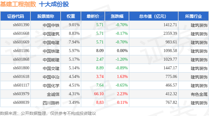 资金流向方面,基建工程(399995)指数成份股当日主力资金净流出合计10.2亿元,游资资金净流入合计3.32亿元,散户资金净流入合计6.88亿元。成份股资金流向详情见下表: