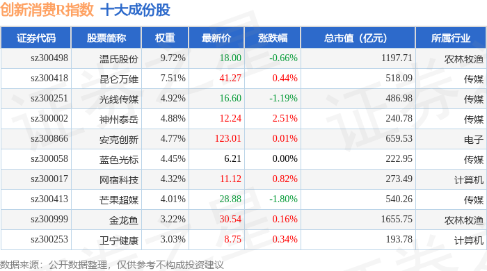 创新消费R(470041)指数十大成份股详情如下: