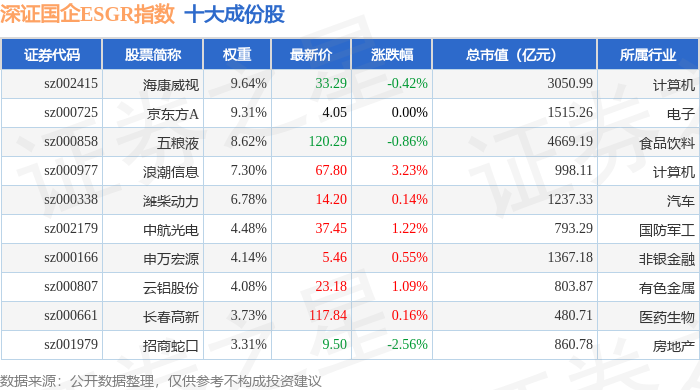 深证国企ESGR(470055)指数十大成份股详情如下: