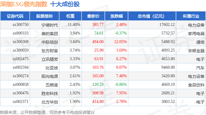 资金流向方面,深指ESG领先(970029)指数成份股当日主力资金净流入合计69.3亿元,游资资金净流出合计39.48亿元,散户资金净流出合计29.81亿元。成份股资金流向详情见下表: