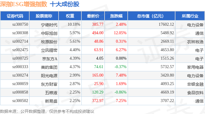 深指ESG增强(970032)指数十大成份股详情如下: