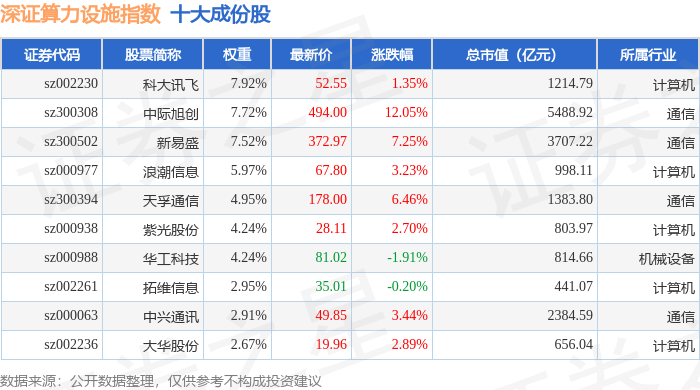 证券之星消息,10月24日,深证算力设施(970051)指数报收于11529.49点,涨4.02%,成交1250.56亿元,换手率3.43%。当日该指数成份股中,上涨的有45家,江波龙以16.73%的涨幅领涨,下跌的有5家,铜牛信息以2.52%的跌幅领跌。