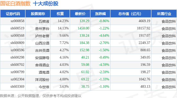 资金流向方面,国证白酒(980031)指数成份股当日主力资金净流出合计15.41亿元,游资资金净流入合计8.08亿元,散户资金净流入合计7.32亿元。成份股资金流向详情见下表: