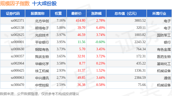 规模因子(980055)指数十大成份股详情如下: