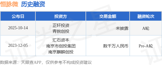 证券之星消息,根据天眼查APP于10月14日公布的信息整理,恒脉微电子(南京)有限公司A轮融资,融资额未披露,参与投资的机构包括正轩投资,青锐创投。