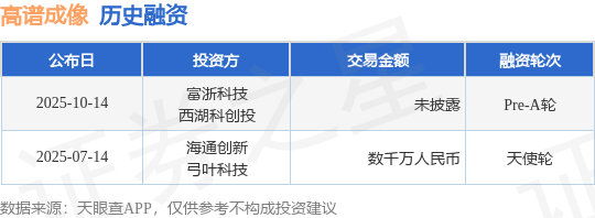 证券之星消息,根据天眼查APP于10月14日公布的信息整理,杭州高谱成像技术有限公司Pre-A轮融资,融资额未披露,参与投资的机构包括富浙科技,西湖科创投。