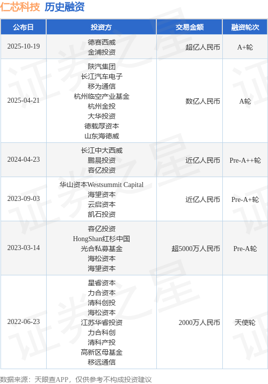 证券之星消息,根据天眼查APP于10月19日公布的信息整理,仁芯致远(杭州)半导体科技有限公司A+轮融资,融资额超亿人民币,参与投资的机构包括德赛西威,金浦投资。