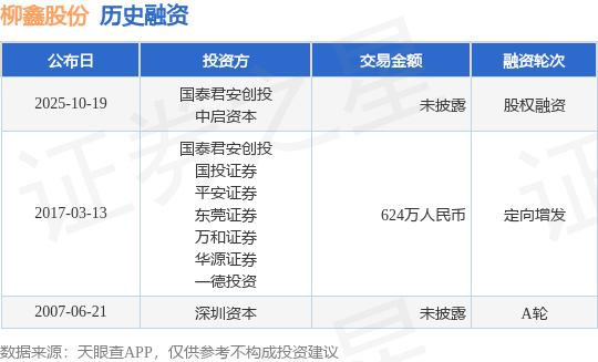 证券之星消息,根据天眼查APP于10月19日公布的信息整理,深圳市柳鑫实业股份有限公司股权融资,融资额未披露,参与投资的机构包括国泰君安创投,中启资本。