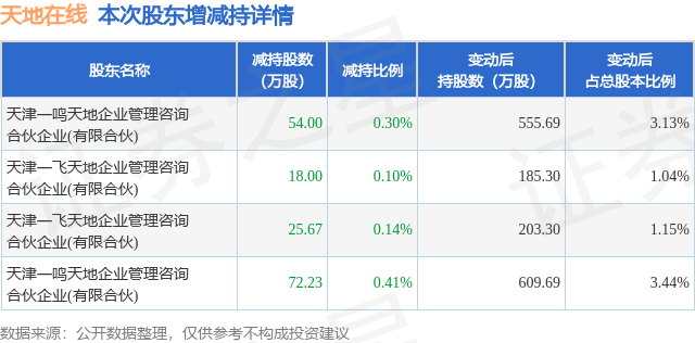 根据天地在线2025年中报公布的十大股东详情如下: