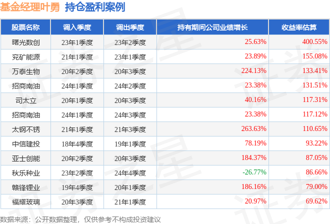 叶勇管理的万家北交所慧选两年定开混合A基金在23年1季度买入曙光数创,在持有1个季度后在23年2季度卖出。持有期间的估算收益率为400.55%,持有期间曙光数创在2022年到2023年的年报营业总收入增幅达25.63%。