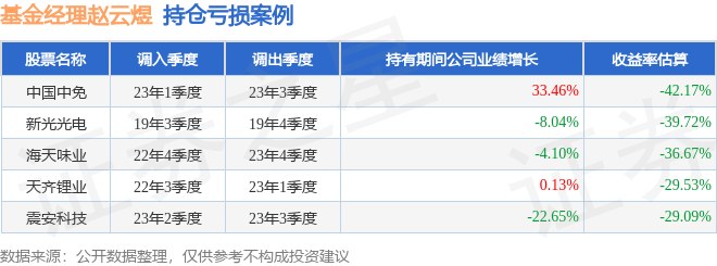 赵云煜管理的建信MSCI中国A股指数增强A基金在23年1季度买入中国中免,在持有2个季度后在23年3季度卖出。持有期间的估算收益率为-42.17%,持有期间中国中免在2022年到2023年的年报归属净利润增幅达33.46%。