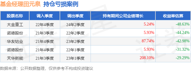 田元泉管理的建信新能源行业股票A基金在22年4季度买入大金重工,在持有1年又2个季度后在24年2季度卖出。持有期间的估算收益率为-48.63%,持有期间大金重工在2022年到2024年的年报归属净利润增幅达5.24%。