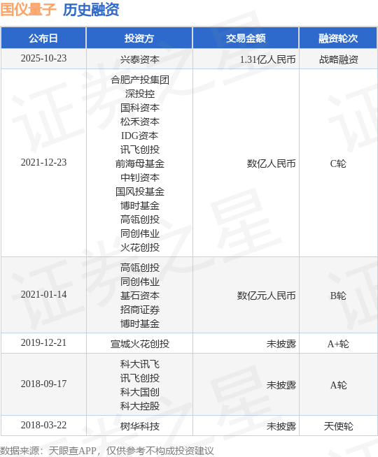 证券之星消息,根据天眼查APP于10月23日公布的信息整理,国仪量子技术(合肥)股份有限公司战略融资,融资额1.31亿人民币,参与投资的机构包括兴泰资本。