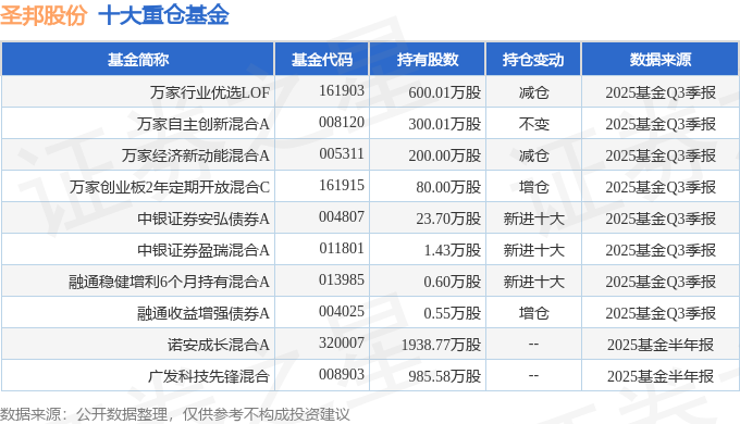 持有圣邦股份最多的基金为万家行业优选LOF,目前规模为86.7亿元,最新净值1.3834(10月24日),较上一交易日上涨2.72%,近一年上涨48.86%。该基金现任基金经理为黄兴亮。