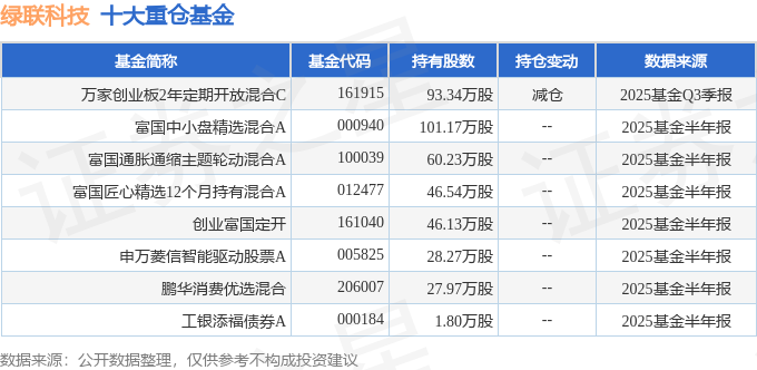 持有绿联科技最多的基金为万家创业板2年定期开放混合C,目前规模为1.14亿元,最新净值0.7611(10月24日),较上一交易日上涨1.44%,近一年上涨19.91%。该基金现任基金经理为黄兴亮。
