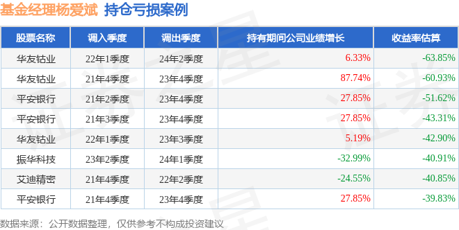 杨爱斌管理的鹏扬景沣六个月持有期混合A基金在22年1季度买入华友钴业,在持有2年又1个季度后在24年2季度卖出。持有期间的估算收益率为-63.85%,持有期间华友钴业在2022年到2024年的年报归属净利润增幅达6.33%。