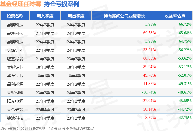 任琳娜管理的招商能源转型混合A基金在22年2季度买入晶澳科技,在持有2年又0个季度后在24年2季度卖出。持有期间的估算收益率为-66.72%,持有期间晶澳科技在2022年到2024年的年报营业总收入降幅为3.93%。