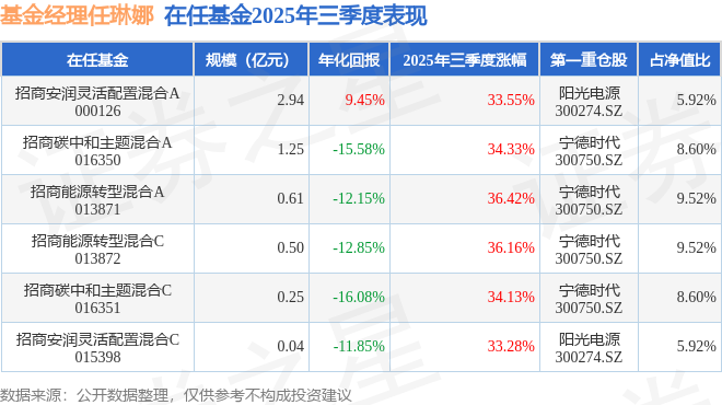 证券之星消息,截止2025年三季度末,基金经理任琳娜旗下共管理6只基金,本季度表现最佳的为招商能源转型混合A(013871),季度净值涨36.42%。