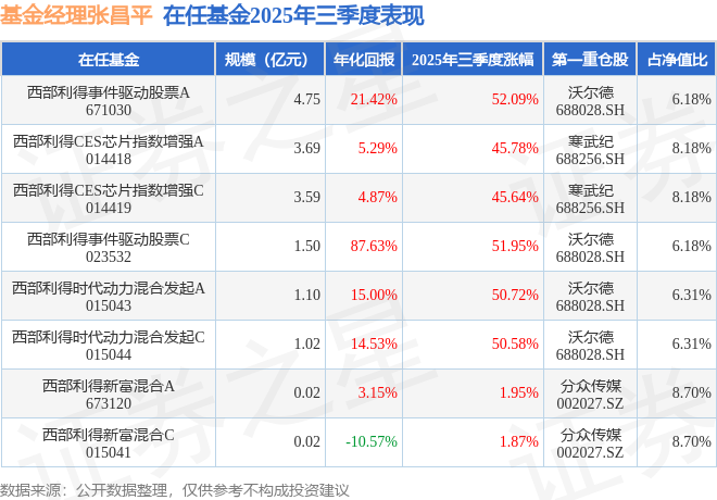 张昌平管理的西部利得事件驱动股票A基金在21年2季度买入晶盛机电,在持有2个季度后在21年4季度卖出。持有期间的估算收益率为80.89%,持有期间晶盛机电在2020年到2021年的年报归属净利润增幅达99.46%。