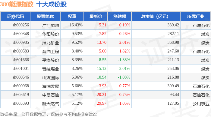 380能源(000104)指数十大成份股详情如下: