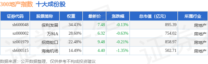 300地产(000952)指数十大成份股详情如下: