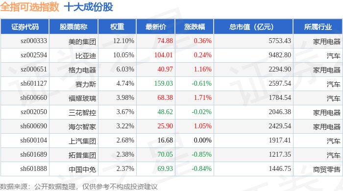 全指可选(000989)指数十大成份股详情如下: