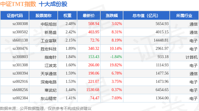 资金流向方面,中证TMT(000998)指数成份股当日主力资金净流入合计81.56亿元,游资资金净流出合计47.99亿元,散户资金净流出合计33.57亿元。成份股资金流向详情见下表: