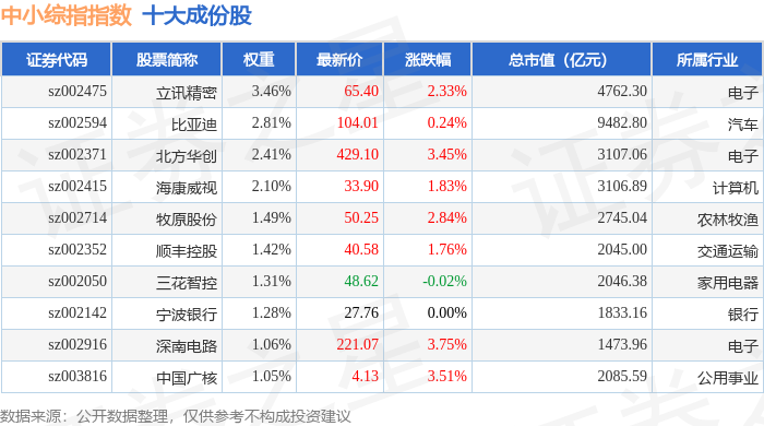 中小综指(399101)指数十大成份股详情如下: