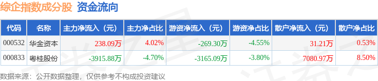 资金流向方面,综企指数(399249)成份股当日主力资金净流出合计3677.79万元,游资资金净流出合计3434.39万元,散户资金净流入合计7112.18万元。成份股资金流向详情见下表: