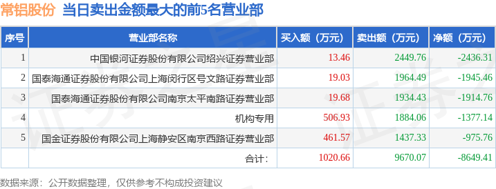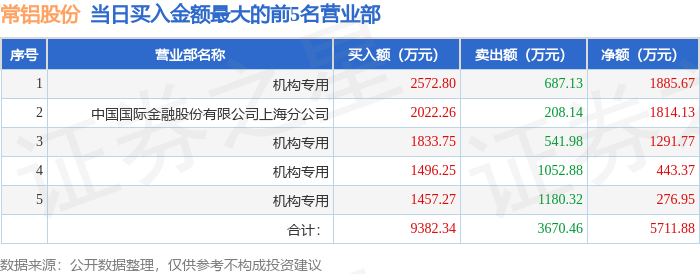 证券之星消息,沪深交易所2025年10月27日公布的交易公开信息显示,常铝股份(002160)因日换手率达到20%的前5只证券登上龙虎榜。此次是近5个交易日内第2次上榜。