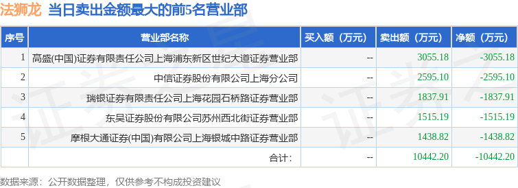 证券之星消息,沪深交易所2025年10月27日公布的交易公开信息显示,法狮龙(605318)因有价格涨跌幅限制的日价格振幅达到15%的前五只证券登上龙虎榜。此次是近5个交易日内第3次上榜。
