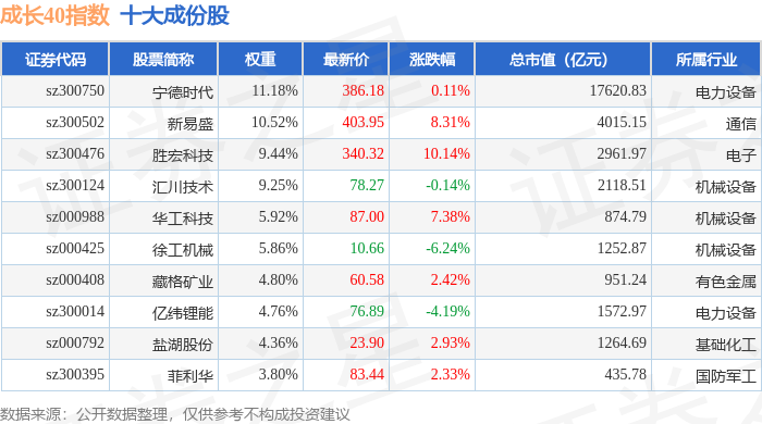 成长40(399326)指数十大成份股详情如下: