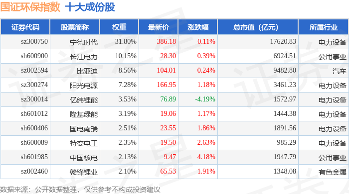 国证环保(399358)指数十大成份股详情如下:
