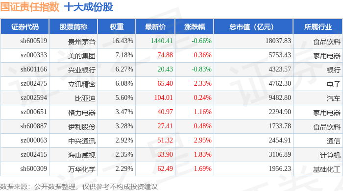 国证责任(399369)指数十大成份股详情如下: