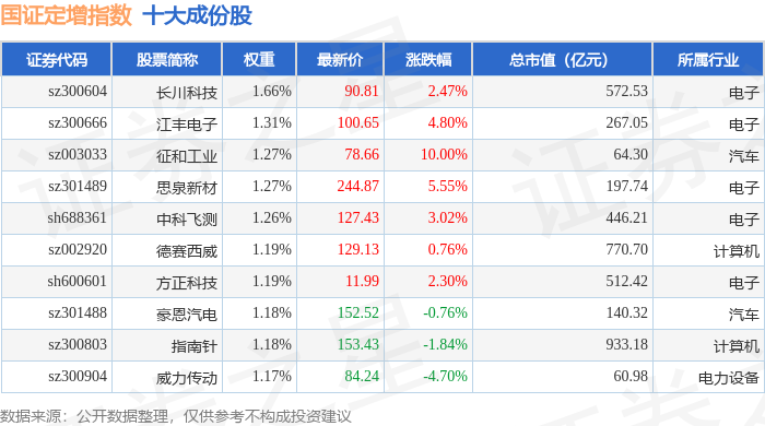 证券之星消息,10月27日,国证定增(399428)指数报收于4285.56点,涨1.59%,成交674.22亿元,换手率2.73%。当日该指数成份股中,上涨的有73家,胜宏科技以10.14%的涨幅领涨,下跌的有24家,威力传动以4.7%的跌幅领跌。
