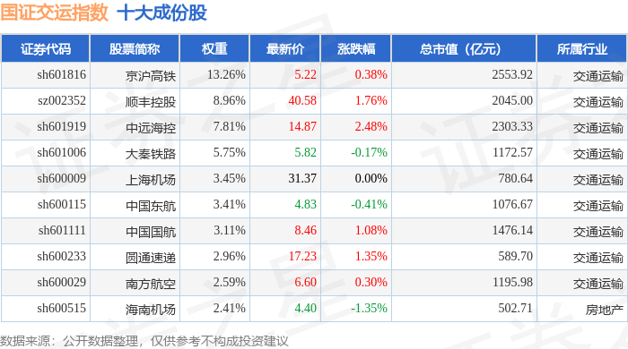 资金流向方面,国证交运(399433)指数成份股当日主力资金净流入合计4.91万元,游资资金净流出合计1.43亿元,散户资金净流入合计1.43亿元。成份股资金流向详情见下表: