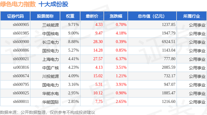 资金流向方面,绿色电力(399438)指数成份股当日主力资金净流入合计7.25亿元,游资资金净流出合计7.03亿元,散户资金净流出合计2272.55万元。成份股资金流向详情见下表: