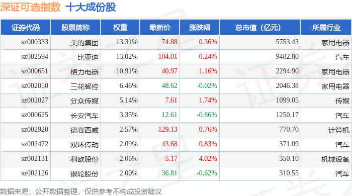 资金流向方面,深证可选(399616)指数成份股当日主力资金净流出合计13.39亿元,游资资金净流入合计2.93亿元,散户资金净流入合计10.46亿元。成份股资金流向详情见下表: