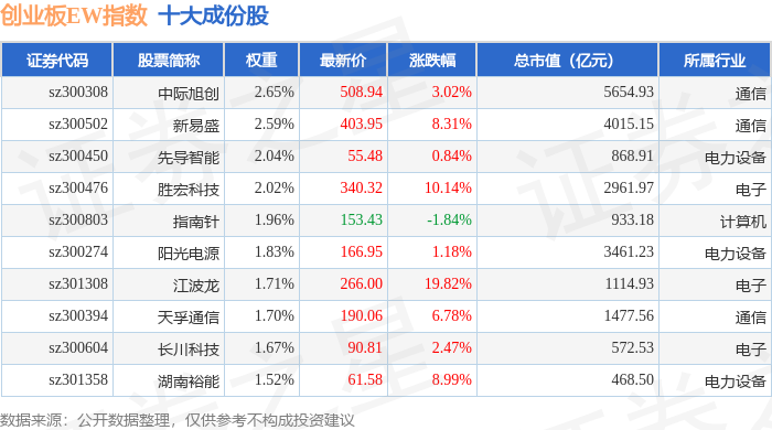 证券之星消息,10月27日,创业板EW(399635)指数报收于2142.07点,涨2.25%,成交2602.83亿元,换手率2.99%。当日该指数成份股中,上涨的有81家,江波龙以19.82%的涨幅领涨,下跌的有17家,晶盛机电以4.59%的跌幅领跌。