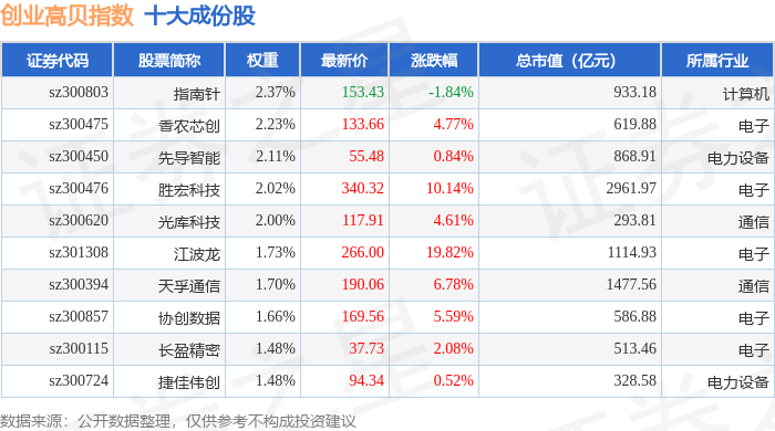 证券之星消息,10月27日,创业高贝(399694)指数报收于4139.63点,涨2.07%,成交1658.55亿元,换手率3.77%。当日该指数成份股中,上涨的有73家,江波龙以19.82%的涨幅领涨,下跌的有27家,赢合科技以7.96%的跌幅领跌。