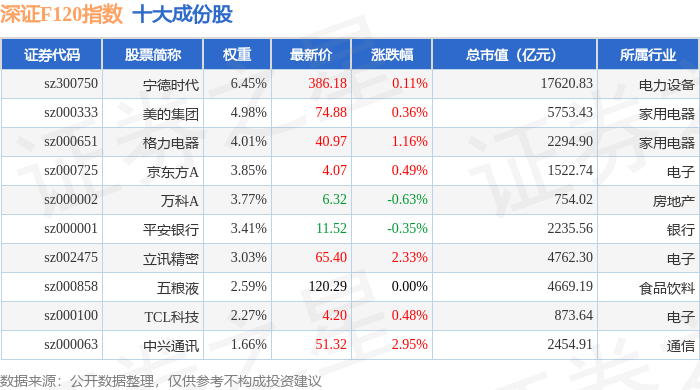 深证F120(399702)指数十大成份股详情如下: