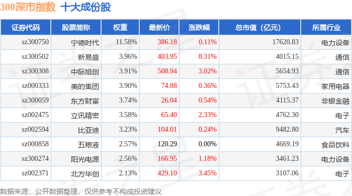 证券之星消息,10月27日,300深市(399972)指数报收于5765.8点,涨1.37%,成交3015.36亿元,换手率1.58%。当日该指数成份股中,上涨的有79家,新易盛以8.31%的涨幅领涨,下跌的有27家,徐工机械以6.24%的跌幅领跌。