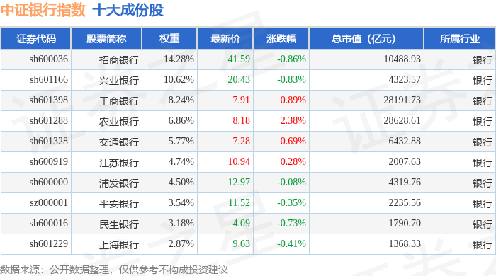 资金流向方面,中证银行(399986)指数成份股当日主力资金净流出合计16.12亿元,游资资金净流入合计9.58亿元,散户资金净流入合计6.54亿元。成份股资金流向详情见下表: