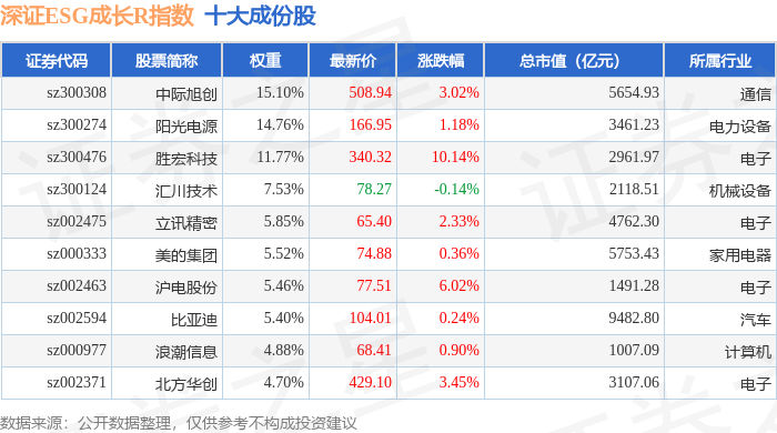 深证ESG成长R(470060)指数十大成份股详情如下: