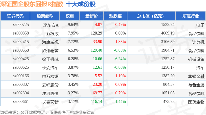 深证国企股东回报R(470064)指数十大成份股详情如下: