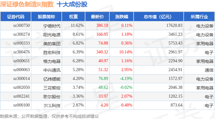深证绿色制造R(470069)指数十大成份股详情如下: