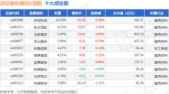 深证绿色建材R(470077)指数十大成份股详情如下: