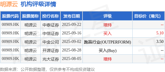 截至2025年10月27日收盘,明源云(00909.HK)报收于3.27港元,上涨1.87%,成交量498.0万股,成交额1619.94万港元。投行对该股的评级以增持为主,近90天内共有2家投行给出增持评级,近90天的目标均价为4.3港元。中泰证券最新一份研报给予明源云增持评级。