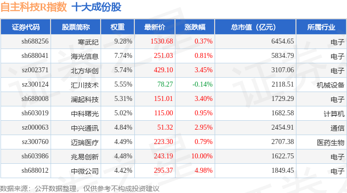 证券之星消息,10月27日,自主科技R(480033)指数报收于10984.41点,涨1.91%,成交1279.96亿元,换手率2.38%。当日该指数成份股中,上涨的有42家,兆易创新以10.0%的涨幅领涨,下跌的有7家,恒玄科技以2.87%的跌幅领跌。